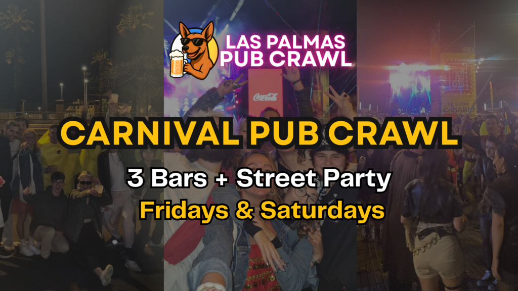 3 bars, welcome shots & guided Carnival street party. The easiest way to experience Carnival in Las Palmas, without getting lost.